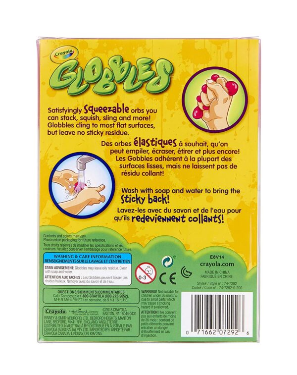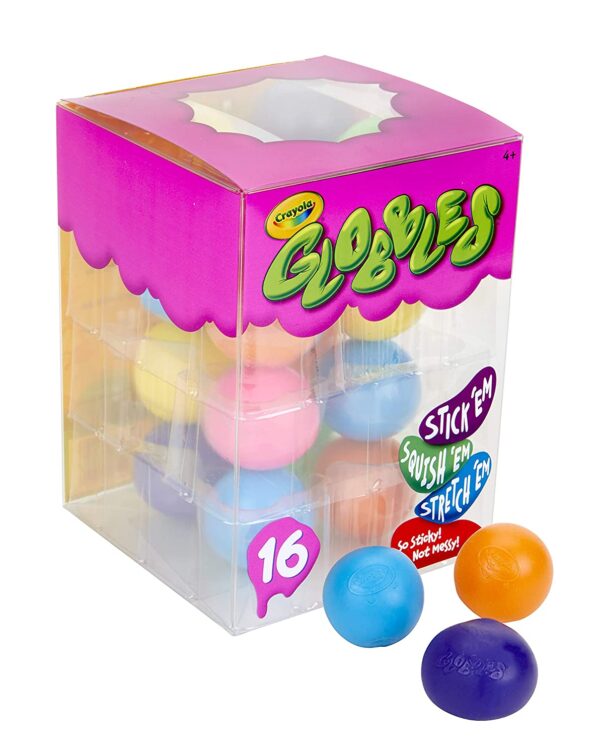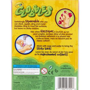 - Crayola Globble Squish Toys come in vibrant colors and are great for sticking, stacking, squishing, slinging, and more.