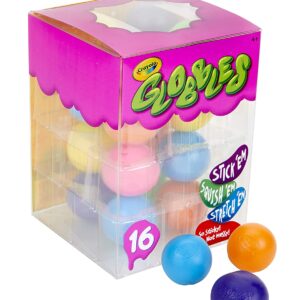 This pack of Crayola Globbles Squish Toys offers 16 vibrant colors you can stick, stack, squish, sling, and more. Use them as stress balls for the office or tradeable toys for kids. These super sticky squeeze toys never leave a sticky residue behind, and remain sticky even after being washed. They easily wash clean with soap and water, so take these portable fidget toys wherever you go!