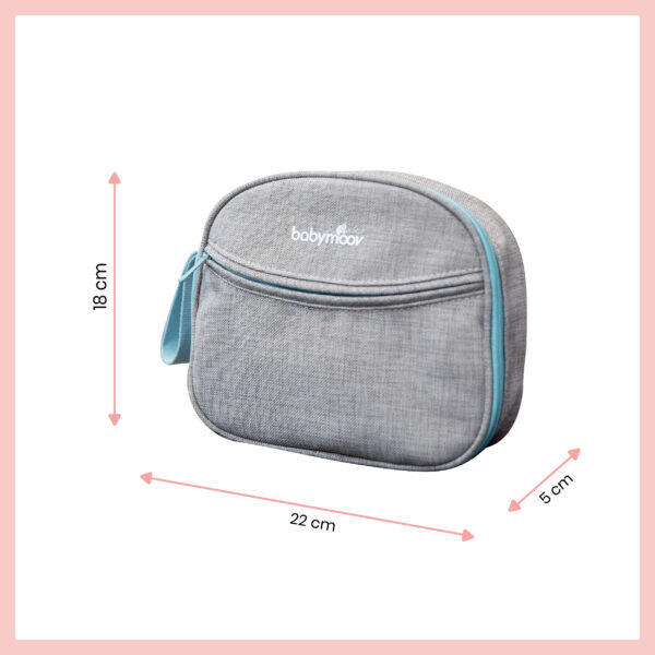 The complete kit contains 9 everyday accessories to keep baby healthy and happy – the storage bag has inner and outer pockets, available in two colour designs.