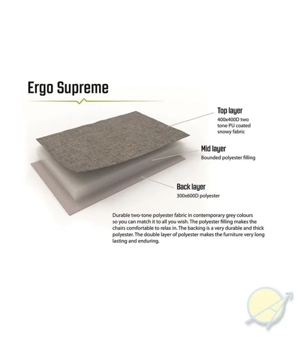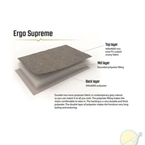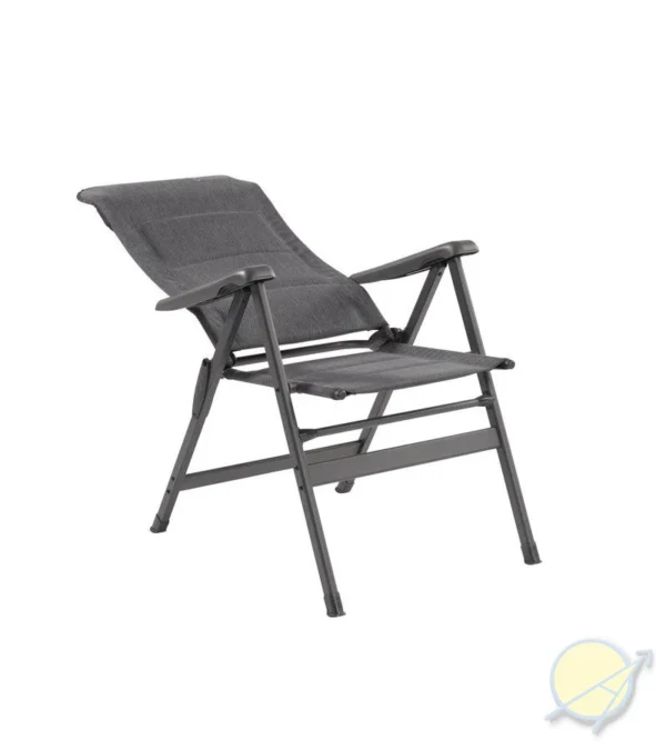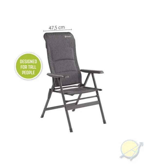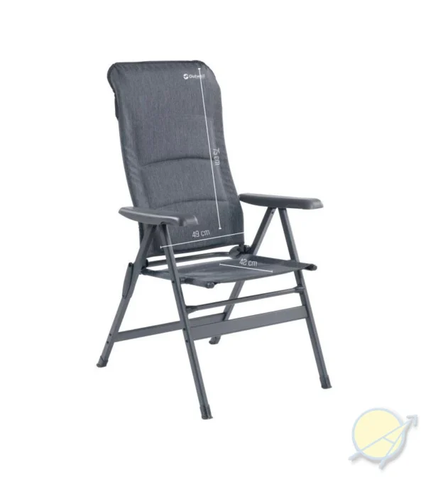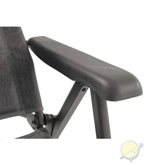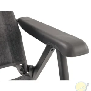 Padded polyester seat and back offers 7-position high back style for optimum comfort, with maximum load of 150kg thanks to the light weight, high strength, powder-coated aluminium frame with ergonomic arms and integrated, detachable neck pillow