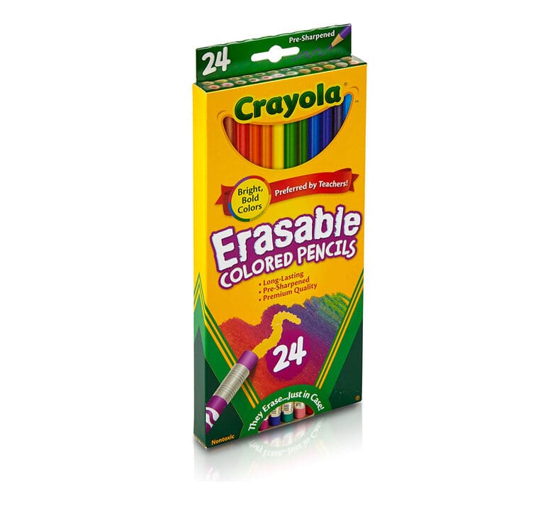 Great for use at home or school, Crayola Erasable Colored Pencils are an essential creative tool for kids. This pack of 24 pre-sharpened colored pencils with erasers let kids easily redo drawings or correct mistakes. Create brightly colored lines that are perfect for school projects and creating detailed artwork.