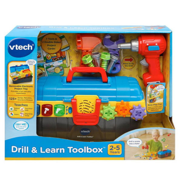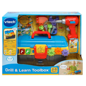 Everyone in your household will be calling you Mr. or Mrs. Fix It with help from the VTech Drill and Learn Toolbox Playset. Open this colorful toolbox to reveal the awesome tools and hardware inside. Learn all about the various tools by pressing the light-up buttons, which also trigger vibrant songs and play the sounds the tools make. Spin the gears by hand to hear them click, or grab ahold of the working drill to rotate them. Then, you can insert the double-sided instruction cards into the slot to find out about colors and numbers. You’ll be repairing small jobs around the house in no time with this toddler-friendly toolbox!
