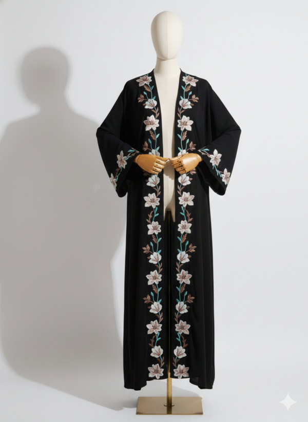 Set Includes: The abaya is paired with a matching Shela (headscarf) for a complete, coordinated look.