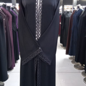 The Obsidian Blossom Abaya Set brings a touch of enchanting elegance to the classic black silhouette. Crafted from comfortable Nida fabric, this abaya is beautifully accented with luxurious Lace and Stone Work detailing, offering a perfect balance of modesty and decorative flair. It is the ideal choice for special occasions and elevated evening wear.