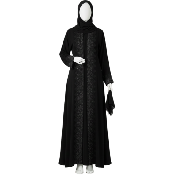Set Includes: The abaya is complemented by a perfectly matched Shela (headscarf).