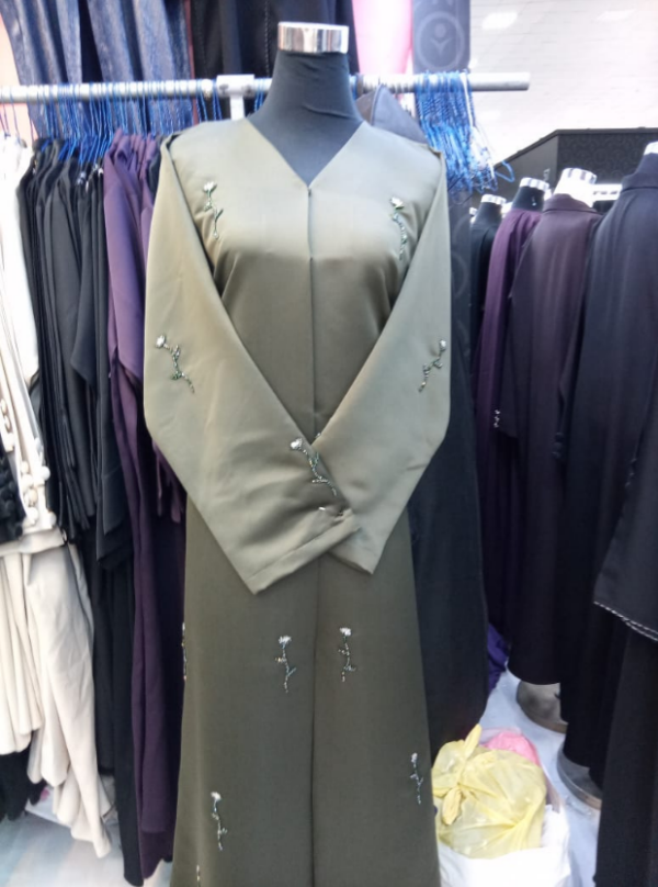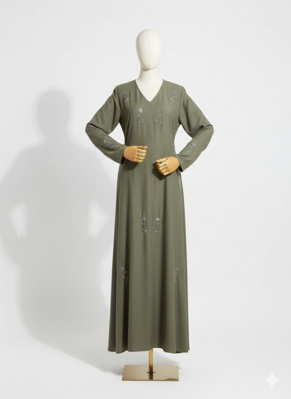 Step into effortless elegance with The Olive Bloom Abaya, a modern piece that blends traditional modesty with contemporary style.