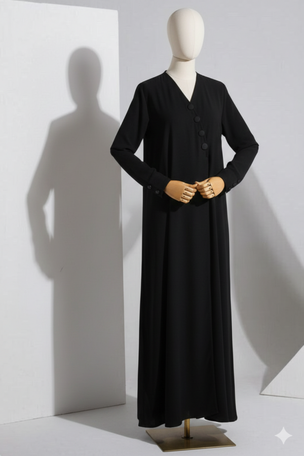 Set Includes: The abaya is complemented by a corresponding Shela (headscarf) to complete your modest look seamlessly.