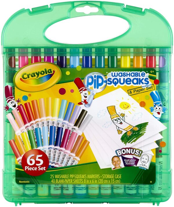 This 65 piece kit contains a colorful collection to have hours of coloring in fun with Crayola Supertips Markers. Supertips markers have a unique, durable, versatile tip that draws thick and thin lines. Use the sides for coloring in large areas and the tips for adding details. Crayola Supertips are great for school projects, doodling and coloring fun, and are easy to wash off skin and clothing.
